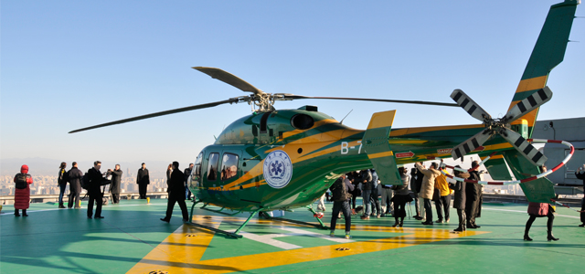 依托于中國國際貿(mào)易中心的地理優(yōu)勢條件,由120北京急救中心配合專業(yè)急救團隊及華彬天星通航提供飛行服務(wù)保障,三方合作開辟了北京第一高樓急救航空通道。據(jù)介紹,120急救所使用的機型為貝爾429直升機,緊急救援時可降落在國貿(mào)大廈330米頂層停機坪運送傷病人員。曾在2014年8月14日降落三環(huán)送病人用的就是這架直升機,平穩(wěn)降落安貞醫(yī)院旁圓滿完成任務(wù)。